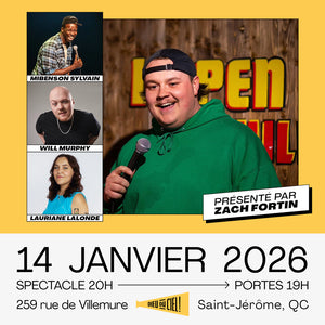 ATTENTION : POUR RÉSERVER UN SPECTACLE, N'AJOUTEZ AUCUN AUTRE PRODUIT À VOTRE PANIER AFIN DE RECEVOIR VOTRE BILLET ÉLECTRONIQUE. MERCI!