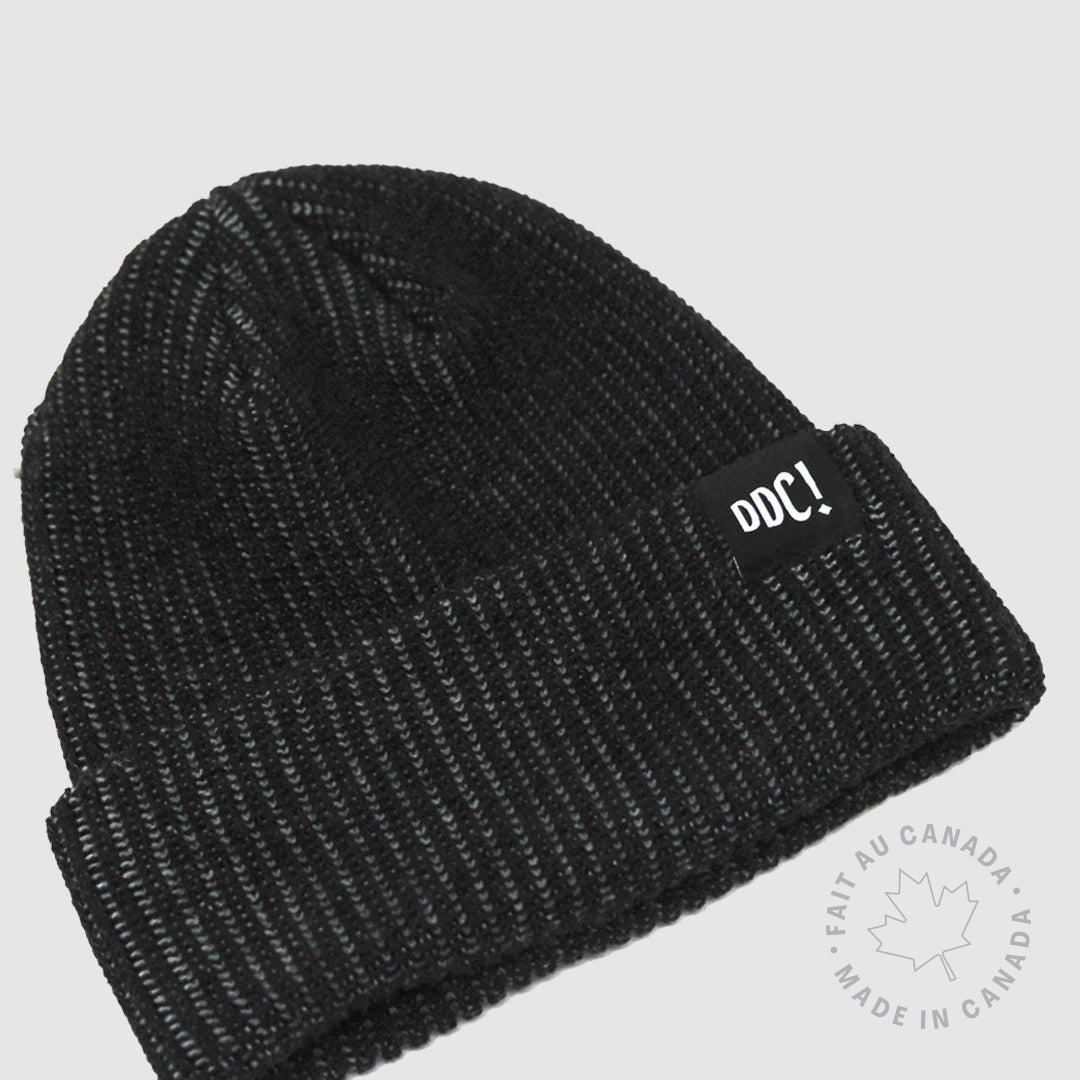 Soft, warm and comfortable beanie in black and grey ribbed stretch fabric . Label with the DDC! icon on the reverse.